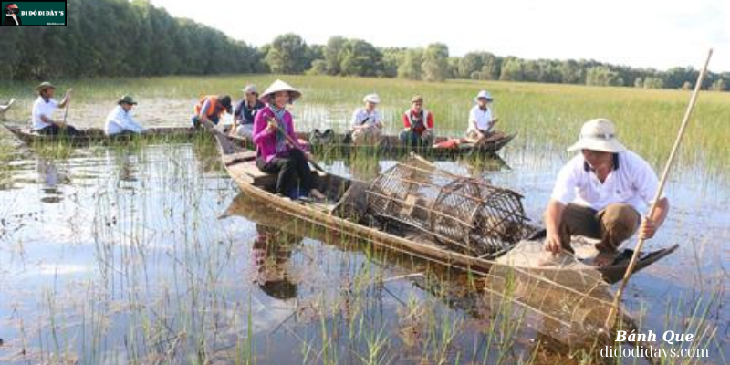 Bạn có thể tham gia các hoạt động tại đây như: giăng lưới bắt cá, tát mương, hái rau đồng, nướng cá dưới rừng hay cấy lúa trời những công việc này cho bạn tiếp cận gần gũi với người dân cũng như những công việc của người sinh sống tại miền sông nước.
