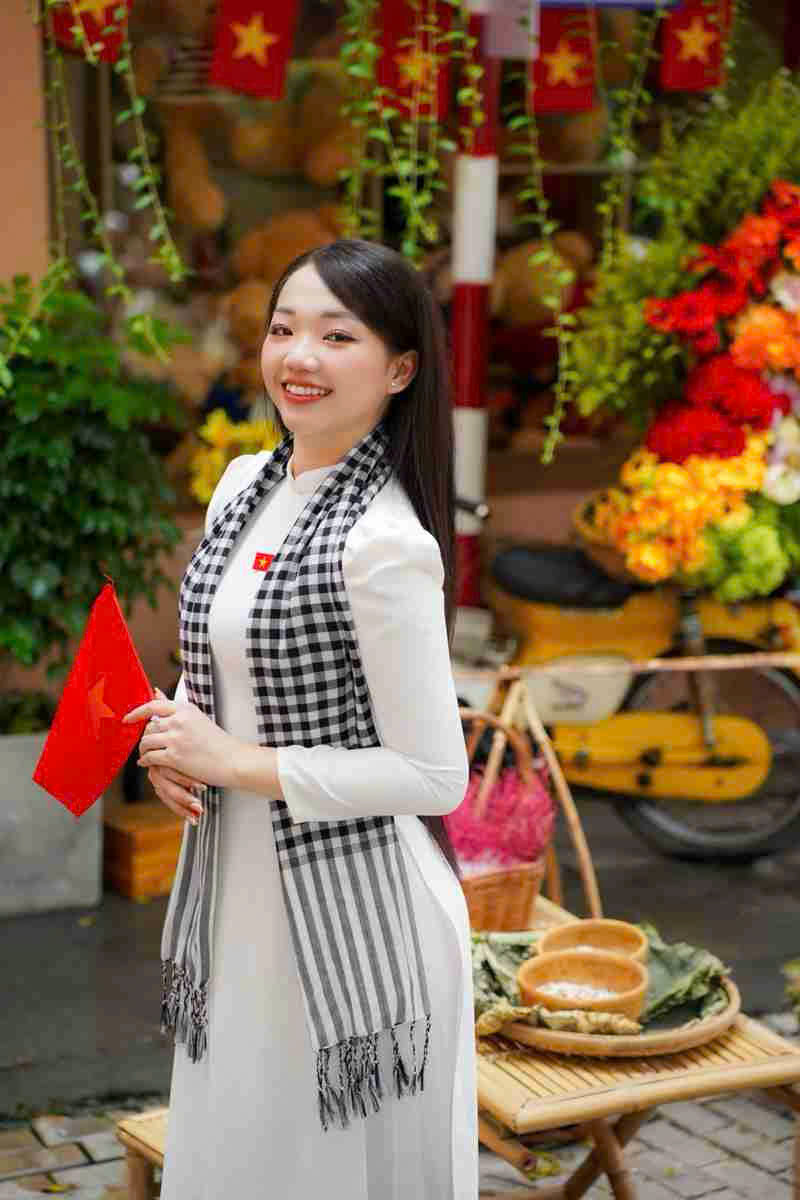 Tu viện mang đậm nét văn hóa Phật giáo Việt Nam, pha trộn hài hòa giữa truyền thống và hiện đại nên nhìn rất vừa mắt. Ấn tượng nhất với mình là cổng tam quan mái ngói đỏ, họa tiết uốn lượn nhẹ nhàng, không quá cầu kỳ nhưng lên hình lại rất ổn áp. Mặc áo dài hiện đại hay cổ phục chụp ở đây đều hợp, nhìn thanh lịch mà vẫn có nét trang nghiêm.